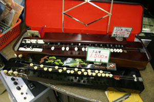 | 店鋪に入って正面奥の楽器コーナーには「大正琴」が2台。 |