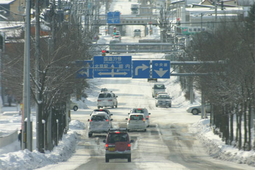 昭和通り、高栄中学校の横から夕陽ヶ丘通り方向