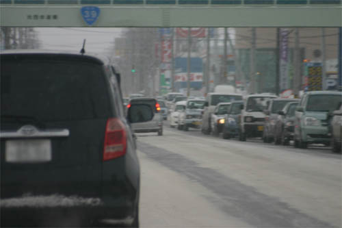 午後3時30分過ぎ、国道39号、イトーヨーカ堂前から光西歩道橋方向