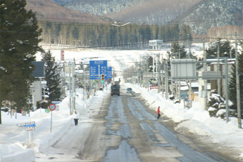 午後2時、北見市豊地から置戸へ向かう裏道のT字路