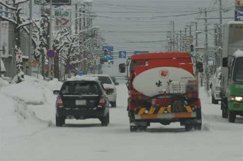 午前9時過ぎ、中央通り、北見郵便局前の交差点から学園通り交差点方向