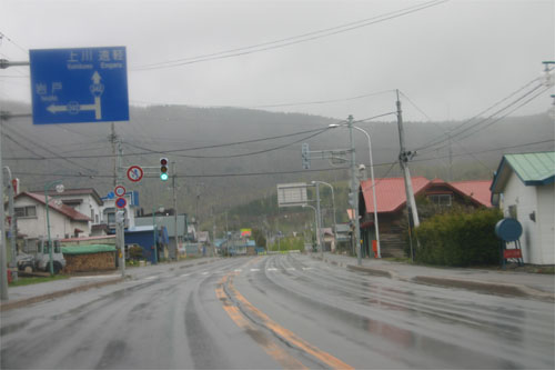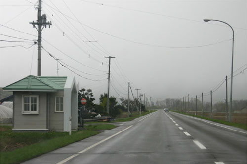 午後3時、国道242号、矢矧のバス停前から生田原方向