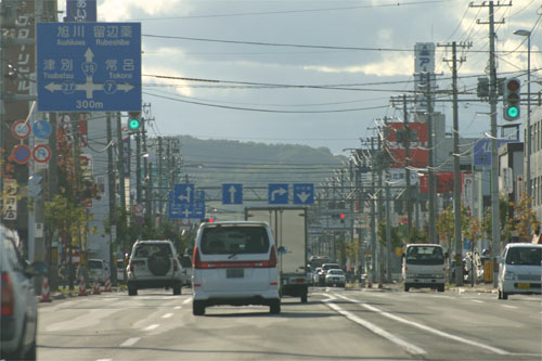 無加川町の南岸通り、西5号線交差点から野付牛自動車学校方向