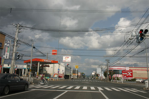 午後3時、とん田東町の南大通り、とん田通り交差点