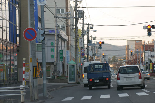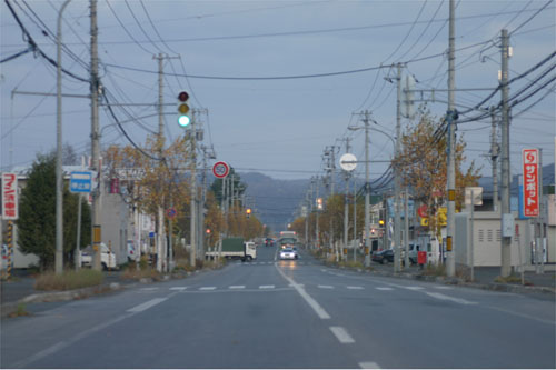 赤信号は南緒緒通り交差点。写真奥は、国道39号方向