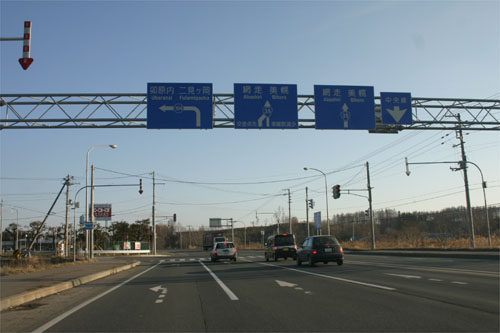午後3時半過ぎ、網走市民会館(左手)前の交差点