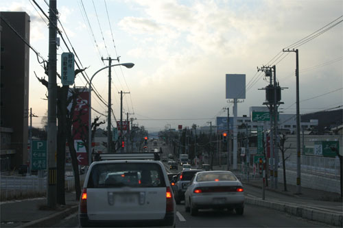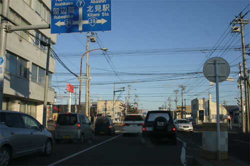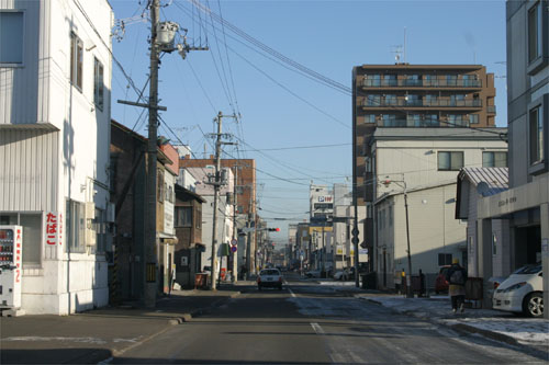 午前9時50分、常盤通り、北見市民会館前から国道39号方向