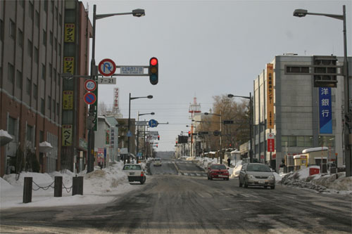 午後3時過ぎ、国道39号、大通り東2丁目から駅前交差点方向