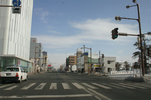 常盤通り、北見市民会館前から国道39号交差点方向