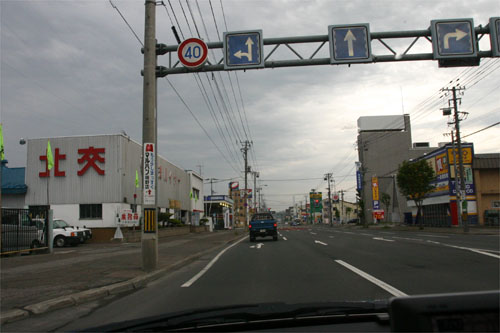 野付牛自動車学校の教習コースとその向こうに無加川橋