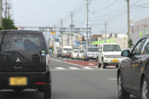 午後5時過ぎ、国道39号、大通り西2丁目パラボ前