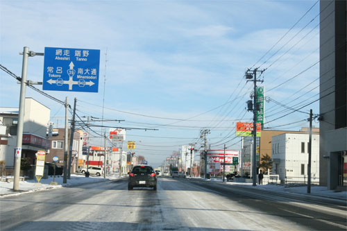 午前10時前、国道39号、大通り西3丁目から北見駅方向