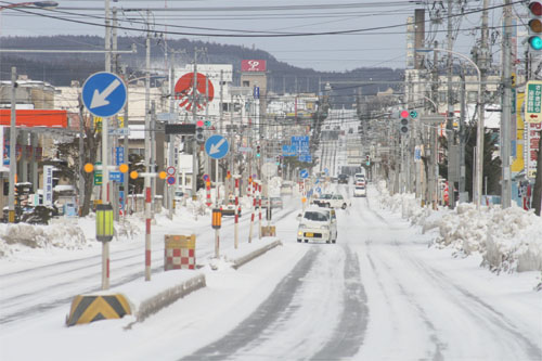 午前10時16分、南岸通り、末広町のセイコーマート前から西5号線方向