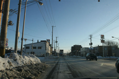 南岸通り、野付牛自動車学校前のとん田通り交差点