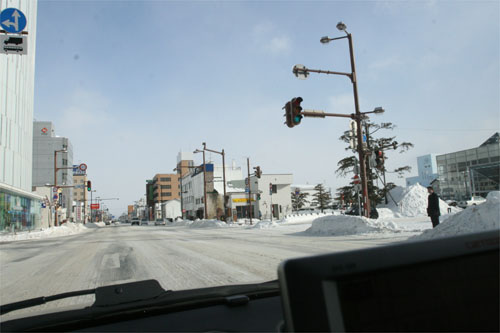 午前9時50分、国道39号、大通り西6丁目、北見スイミングスクール前から北見駅方向