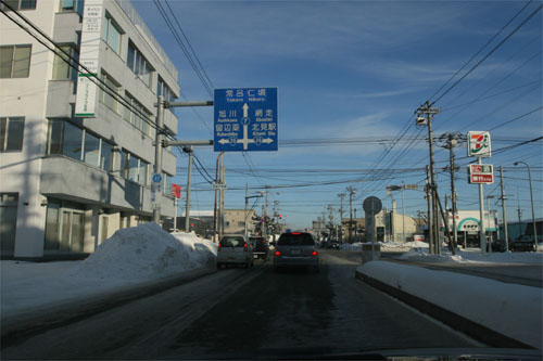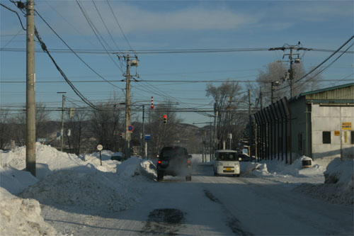 南岸通り、野付牛自動車学校前のとん田通り交差点