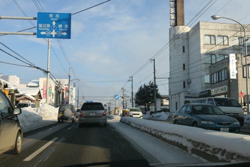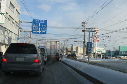 南岸通り、野付牛自動車学校前のとん田通り交差点