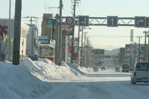 北3条通り、本町2丁目の松浦水産前から市内方向