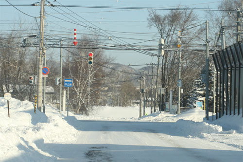南岸通り、野付牛自動車学校前のとん田通り交差点