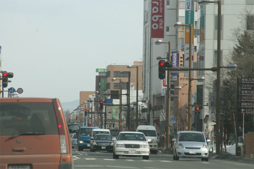 午前9時40分、常盤通りの常盤橋から北見市民会館方向