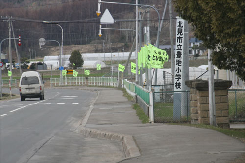 道々置戸福野北見線、豊地小学校を過ぎて西10号線の交差点