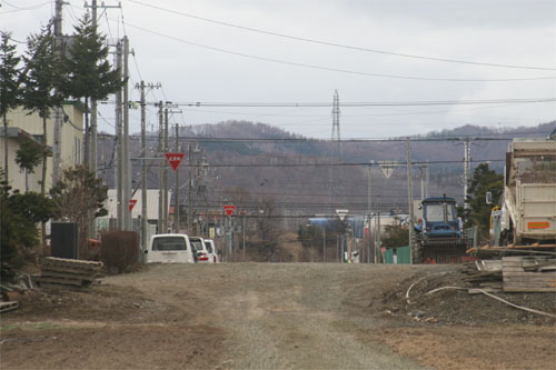 北見工業団地内、京セラ裏側の道路、前方が西6号線交差点