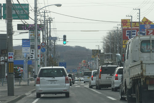 午後3時過ぎ、国道39号、三輪の西5号線交差点から三輪歩道橋方向