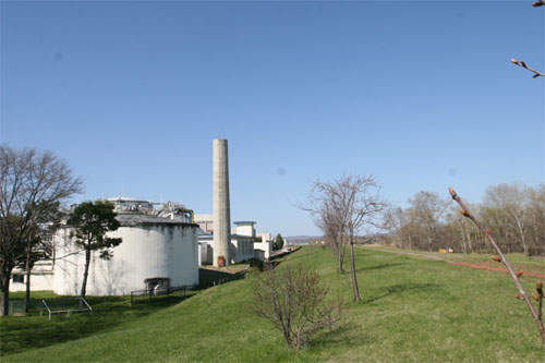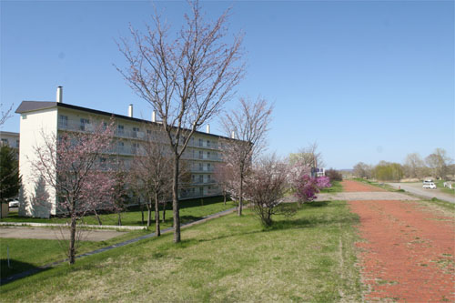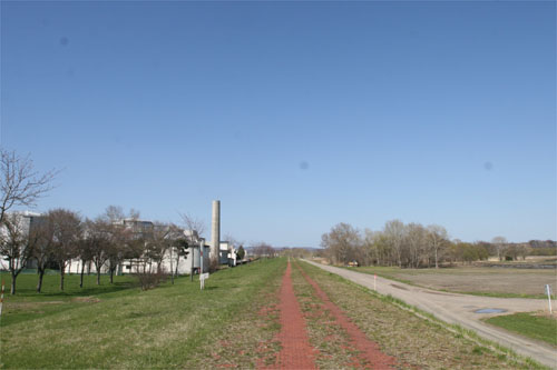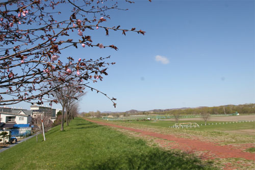 常呂川左岸堤防、東8号線とその向こうがひかり野