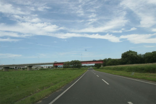 前方の橋が東6号線の北見大橋