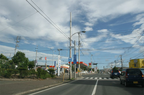 末広町の南岸通り、野付牛自動車学校前のとん田通り交差点