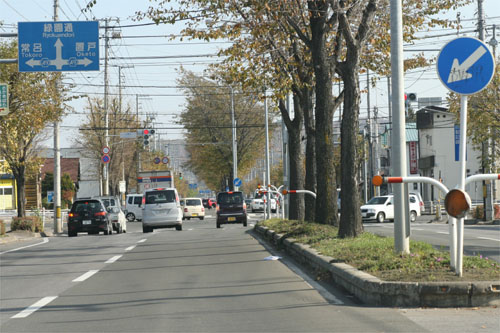 午前11時過ぎ、GEO前の南大通りを玉越病院側からとん田通り方向