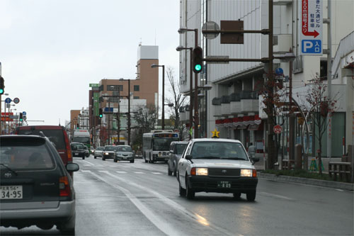 午前9時40分、常盤通り、常盤橋から北見市民会館方向