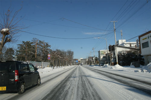 午前9時40分、常盤通り、常盤橋から北見市民会館方向
