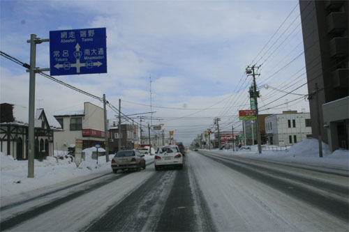 午前9時40分、常盤通り、常盤橋から北見市民会館方向
