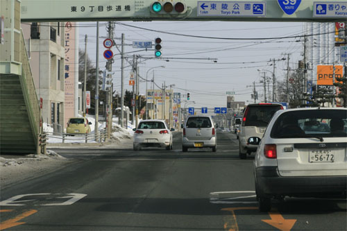 午前9時40分、常盤通り、常盤橋から北見市民会館方向