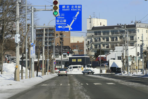 午前9時40分、常盤通りの常盤橋を北見市民会館方向