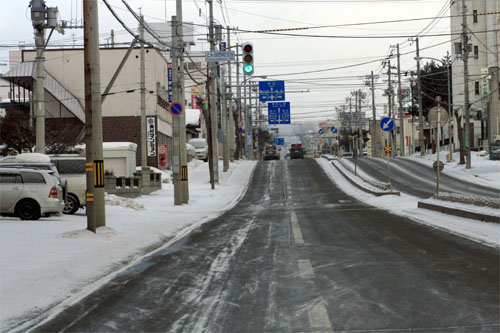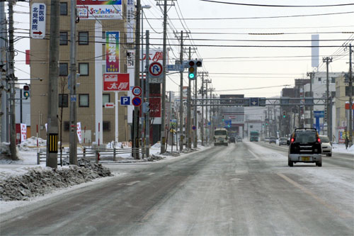 野付牛自動車学校前の南岸通り、とん田通りの交差点