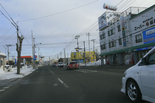 とん田通り、南大通り交差点から北見中央病院方向