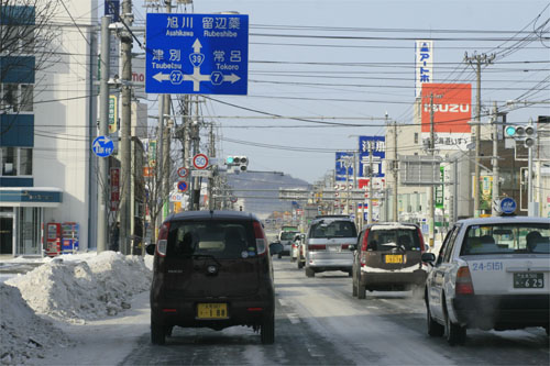 南岸通り、末広町のセイコーマート前から無加川町方向