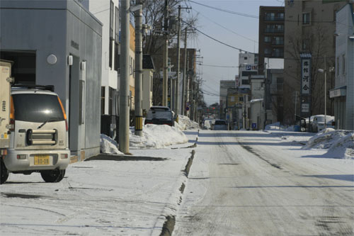 末広町の南岸通り、セイコーマート前から野付牛自動車学校方向