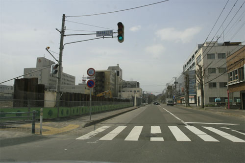 東2丁目通り、北4条通り交差点から北見赤十字病院方向