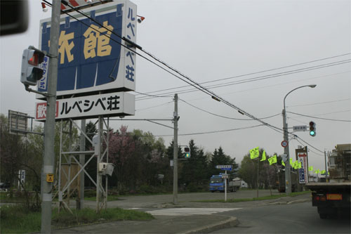 午後2時、留辺蘂の国道39号、浜佐呂間へ向かう交差点