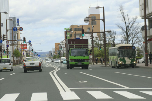 国道39号、大町郵便局前から大通り東13丁目交差点