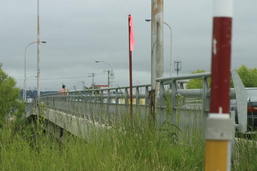 常盤橋を渡ってすぐ左の河川敷パークゴルフ場と堤防