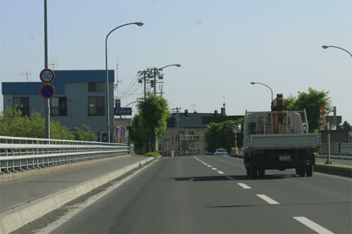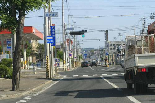 とん田通り、南大通り交差点を過ぎて北見中央病院手前
