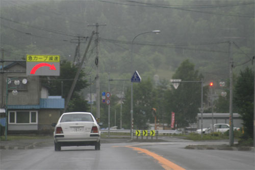 午後2時半、国道242号、生田原中学校前から市街方向