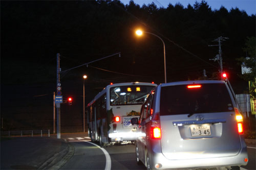 午後7時前、学友橋から大通りに出て、バイパスの国道242号交差点