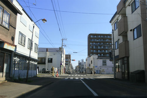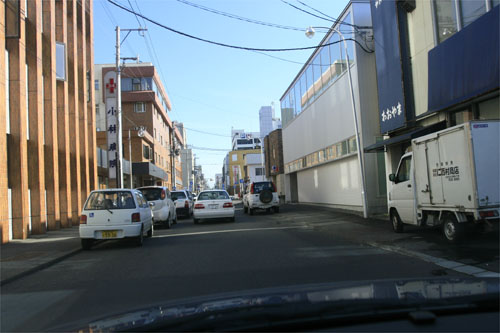 午前8時半、北3条通り、信濃屋旅館横の西5丁目通り交差点
