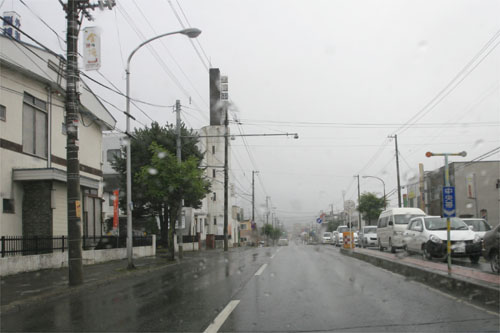 午前8時過ぎ、とん田通り、北見中央病院入口前