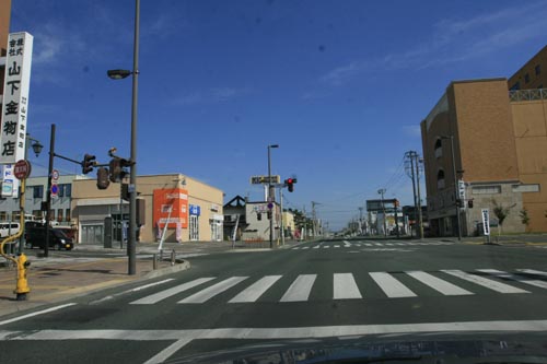 国道39号、山下金物店前、大通り東4丁目通り交差点(仁頃通り)